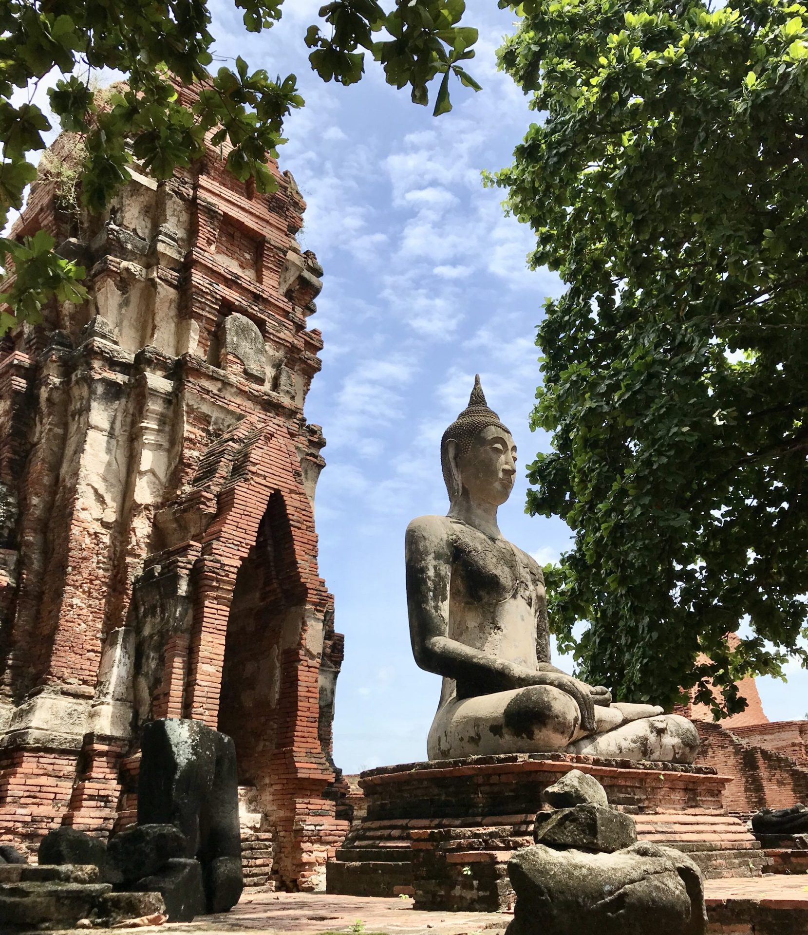 THAILAND – Salah satu patung Buddha di situs Candi Wat Phra Mahathat di Ayutthaya, Thailand.