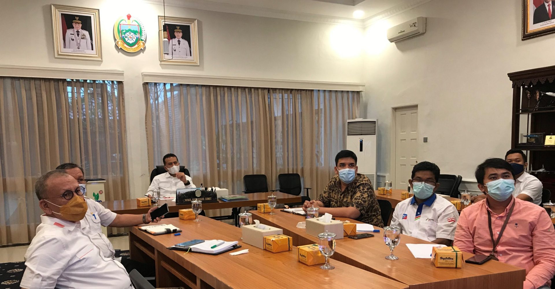 Suasana pertemuan antara Sales Area Manager Sumatera PT. Pertamina Retail (batik cokelat) dengan Wagub Sumut (tengah kemeja putih)